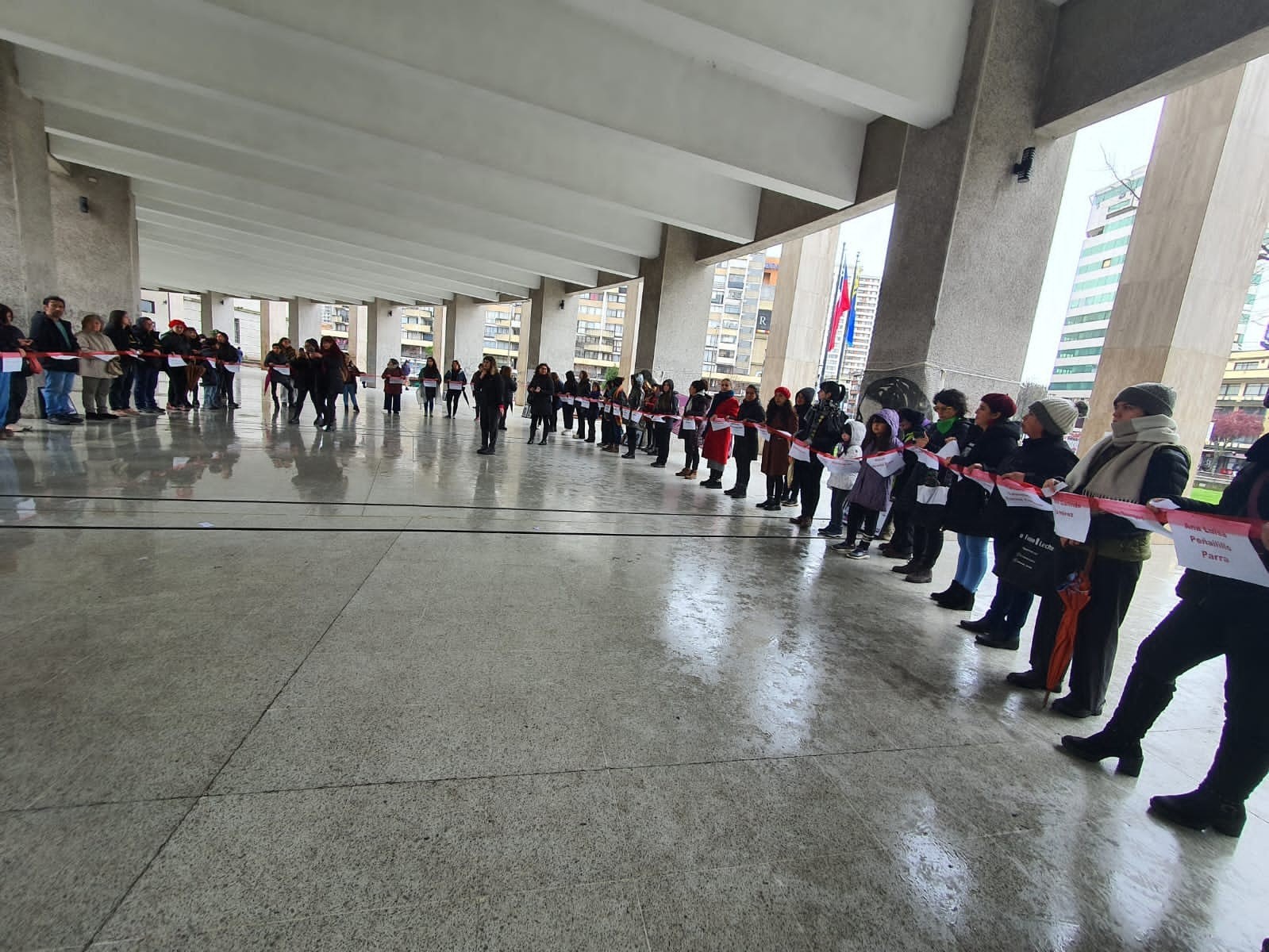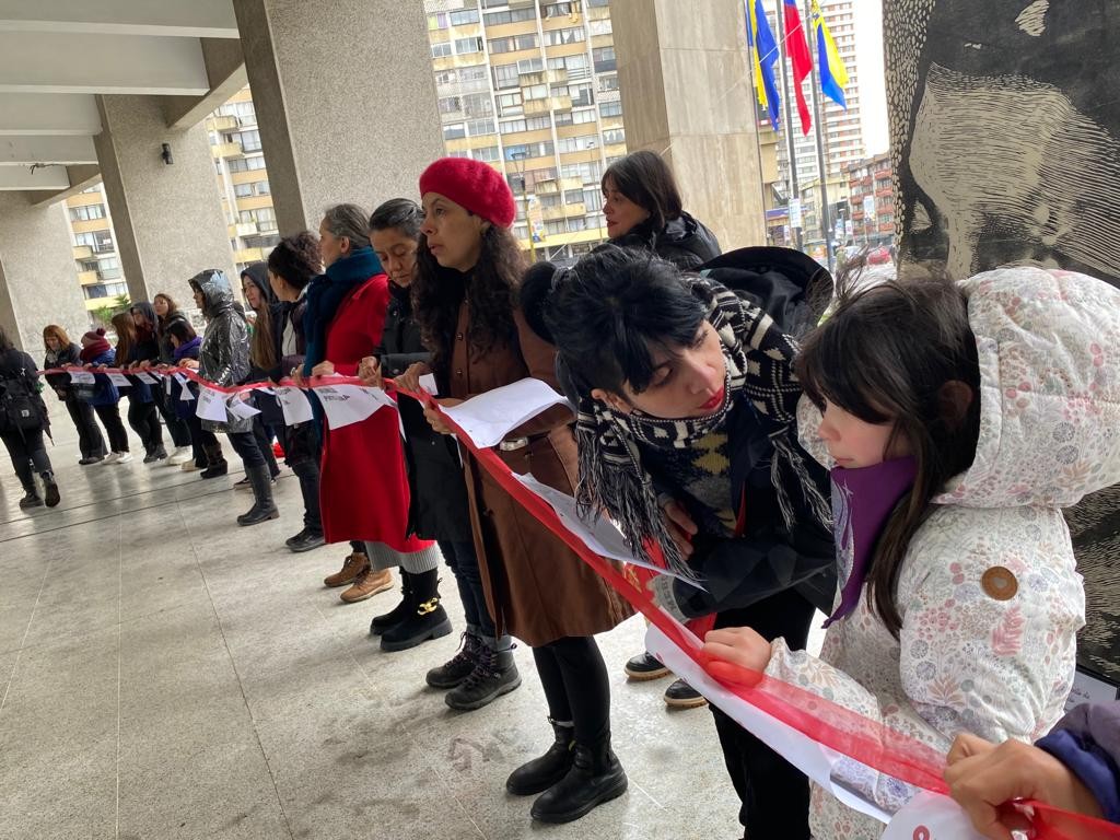 Los nombres impresos en una cinta roja conformaron un círculo que acogió a las convocadas y que incluyó en la memoria a las que ya no están. Posteriormente hubo presentaciones de canto y cueca sola por parte de Callejeras autoconvocadas.