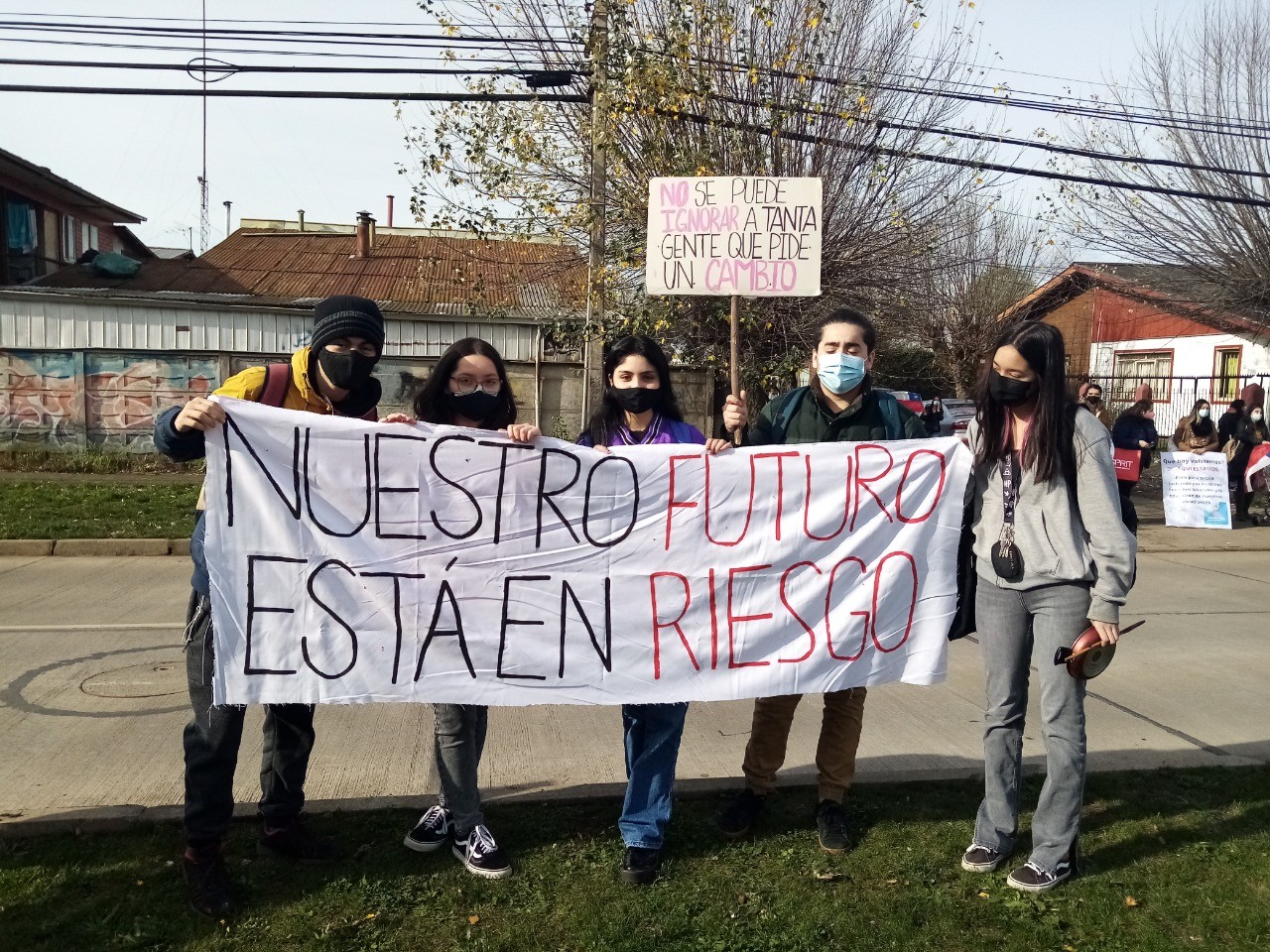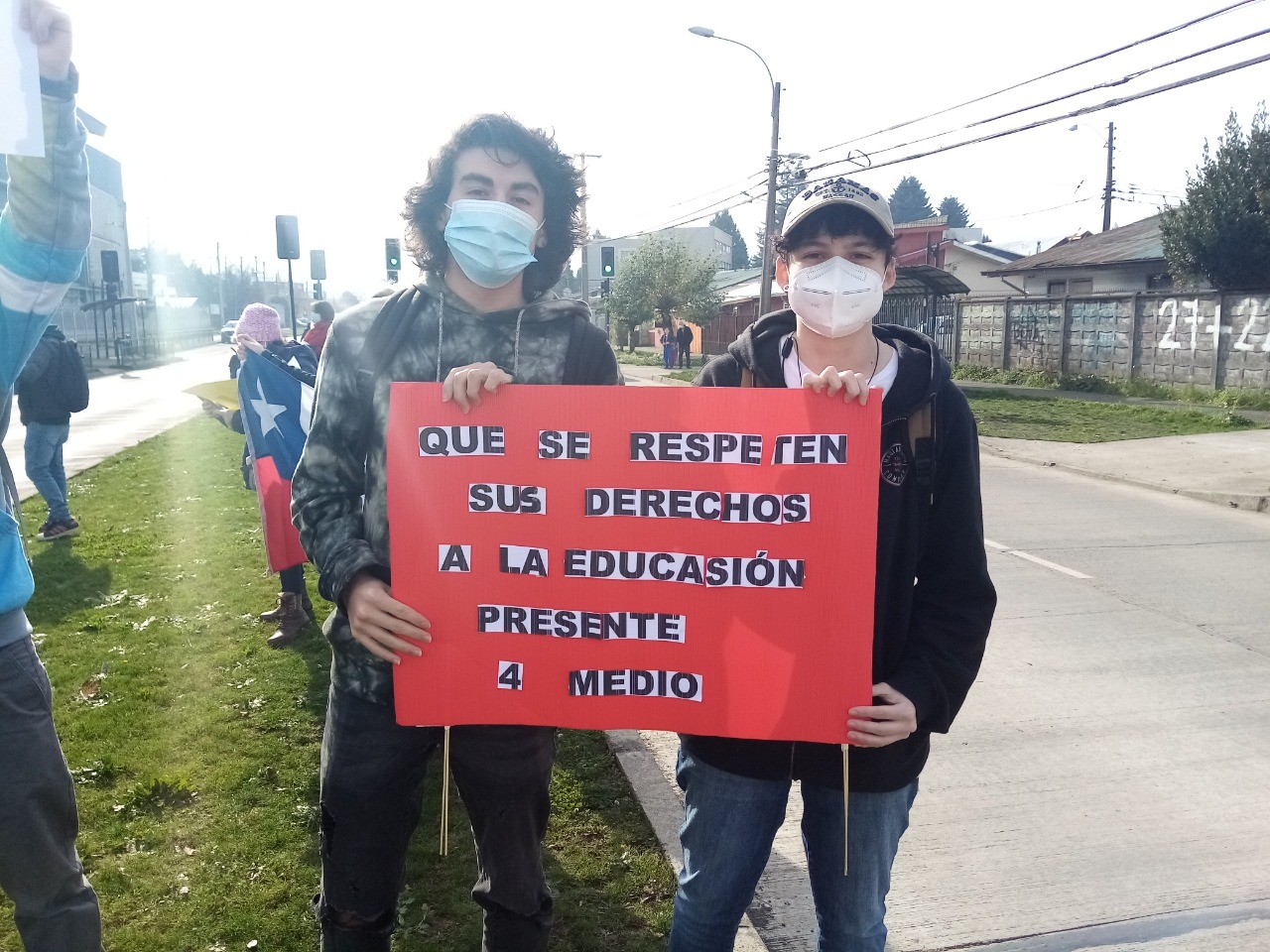 Al mediodía del pasado lunes, estudiantes del Liceo Camilo Henríquez de Temuco se manifestaron en el frontis del establecimiento en apoyo al sindicato de trabajadores/as, que hasta el momento llevan 92 días de huelga por la intransigencia de la Corporación Educacional El Bosque en el proceso de negociación colectiva. Por Constanza Ulloa MillaguirHan pasado tres meses desde que el sindicato de trabajadores/as del emblemático Liceo Camilo Henríquez de Temuco dio inicio a una huelga histórica debido a la intransigencia por parte de Corporación Educacional El Bosque en el proceso de negociación colectiva. La nula intención de la corporación para destrabar la huelga ha provocado serias secuelas a la comunidad estudiantil. Incertidumbre y estrés son las emociones que están sufriendo sus estudiantes debido al nulo acercamiento de la corporación hacia el sindicato, ya que cuentan con un mínimo de clases por semana, no cuentan con evaluaciones y centenares de estudiantes están próximos a la Prueba de Transición Universitaria (PTU) amitad de año de su realización.