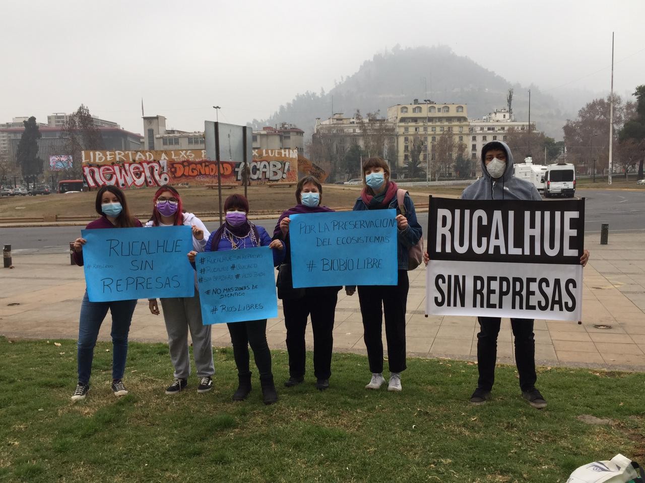 Asimismo, la movilización contó con un gesto de apoyo político desde la región Metropolitana, donde un grupo de personas se manifestó en las cercanías de la Plaza de la Dignidad en defensa de Rucalhue.