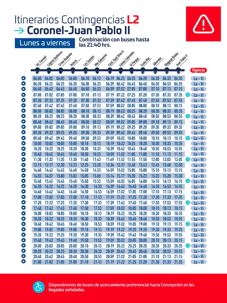 Por ahora, buses están realizando el tramo sobre el Puente Llacolén entre ambas estaciones de las riberas del río. No obstante, los servicios de la L1 y Tren Laja-Talcahuano operan con normalidad.