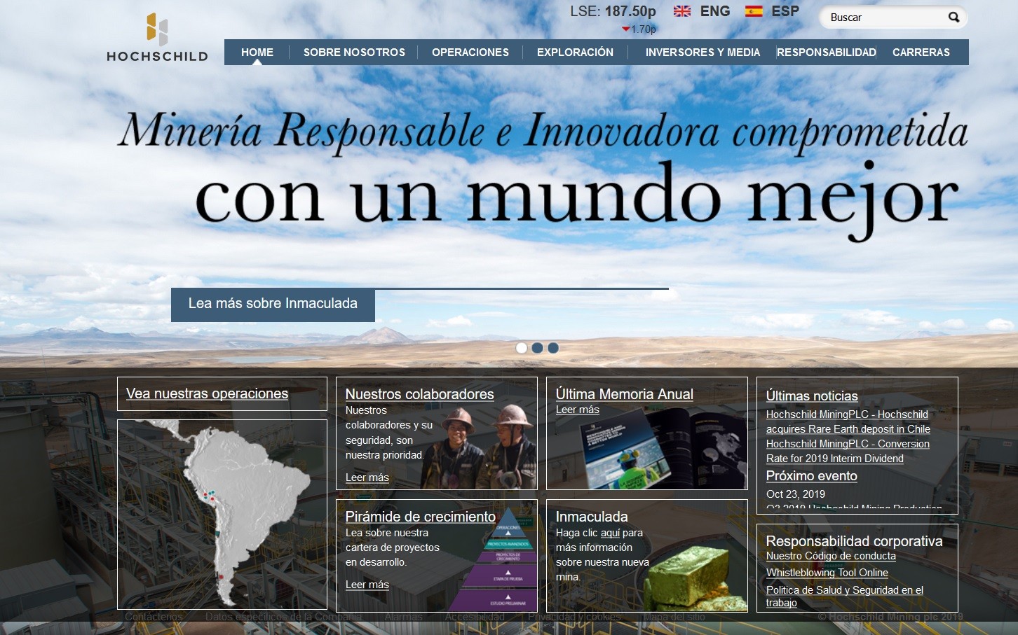 Así se presenta la minera Hochschild en su pagina web. Fuente: hochschildmining.com