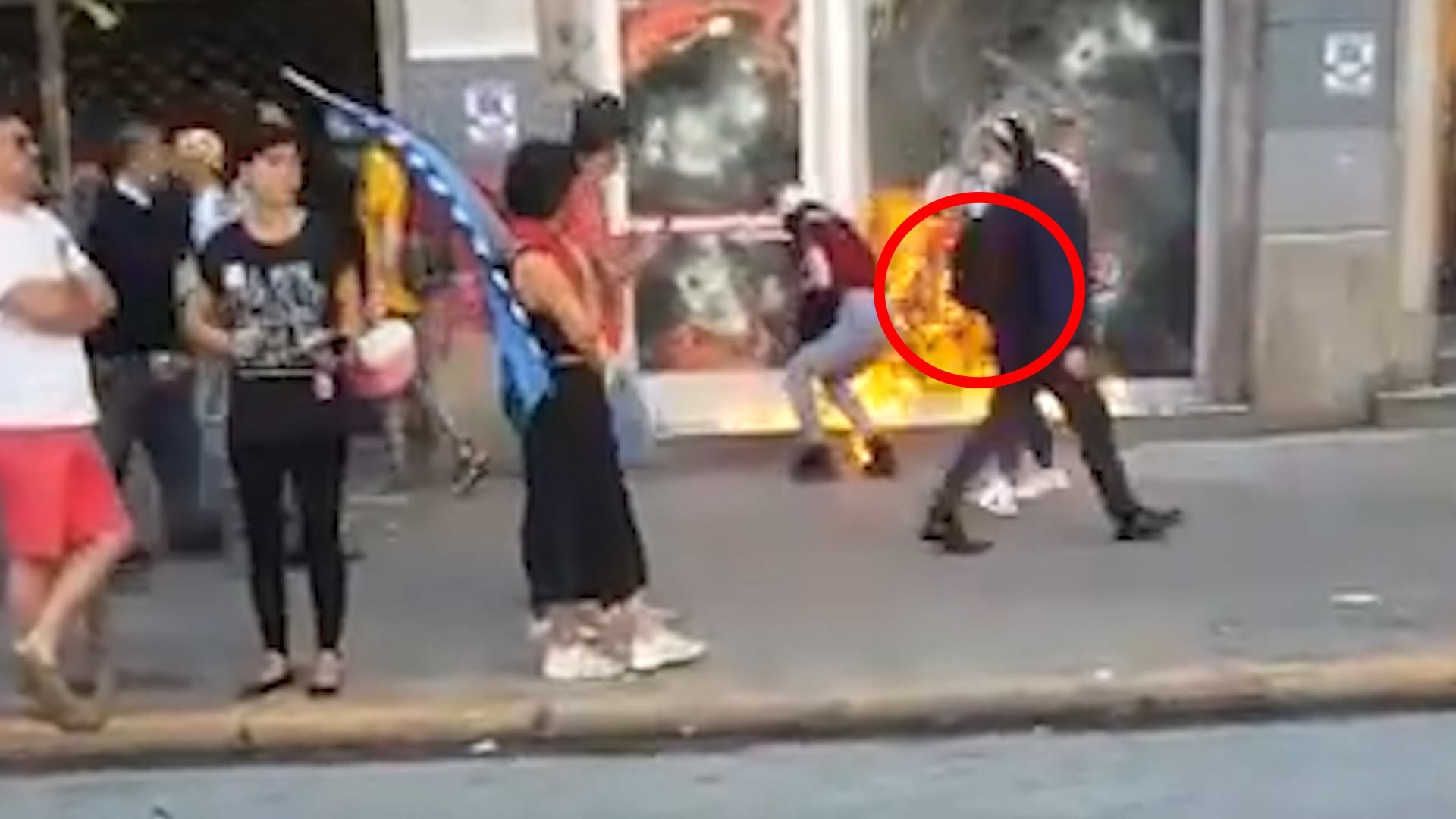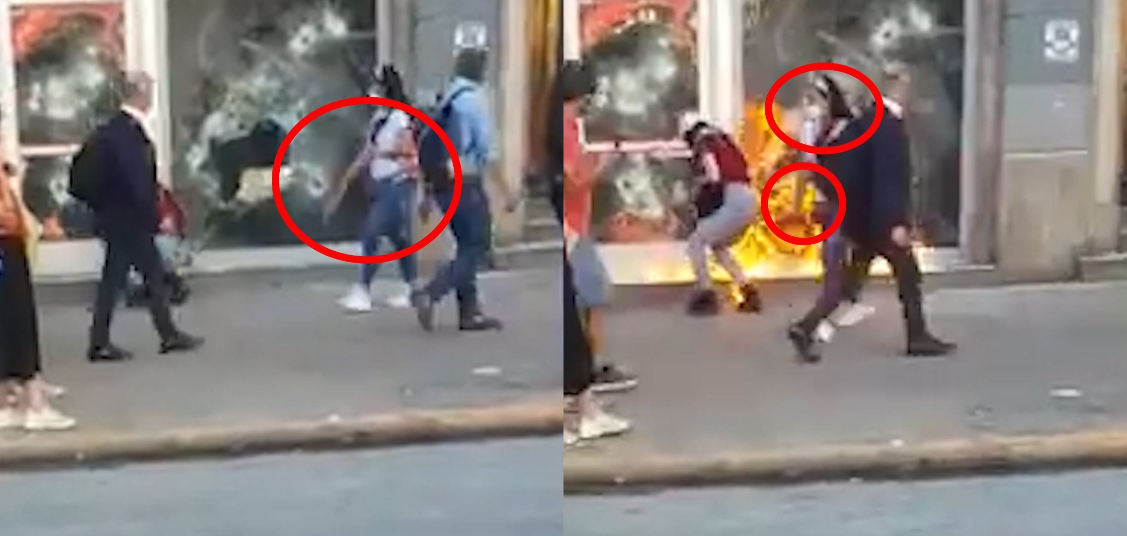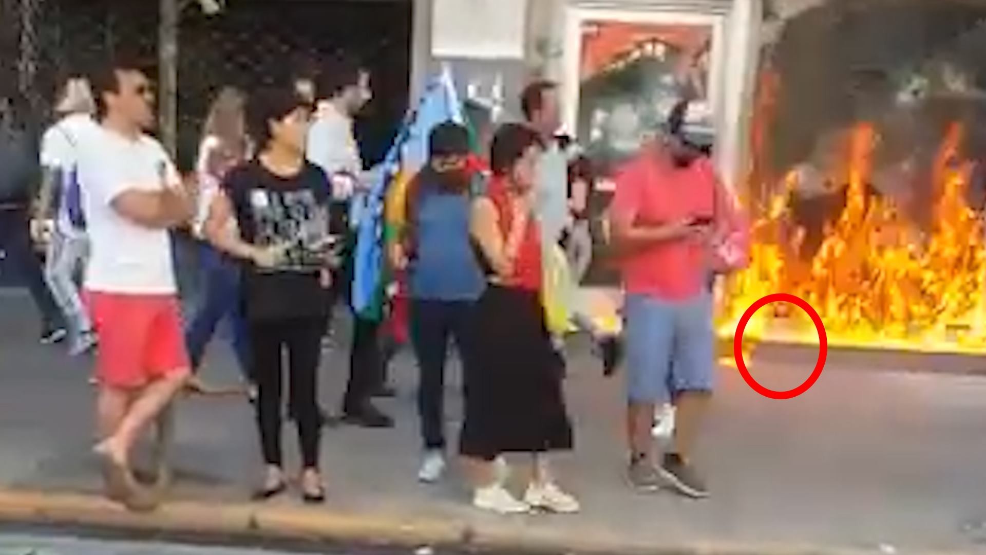 Si bien el burdo intento de la nota presentada por Matías del Río pretende intentar hacer creer a los y las televidentes que manifestante había iniciado un supuesto incendio afirmando la voz en off "así quedó demostrado", queda claro nada más ver las imágenes y lo notorio del efecto agregado computacionalmente (por ejemplo, con after effects). Analizaremos paso por paso para quien le quede duda el por qué es una vil mentira presentada irresponsablemente en el noticiero central del canal del Estado para quien pueda dudarlo: