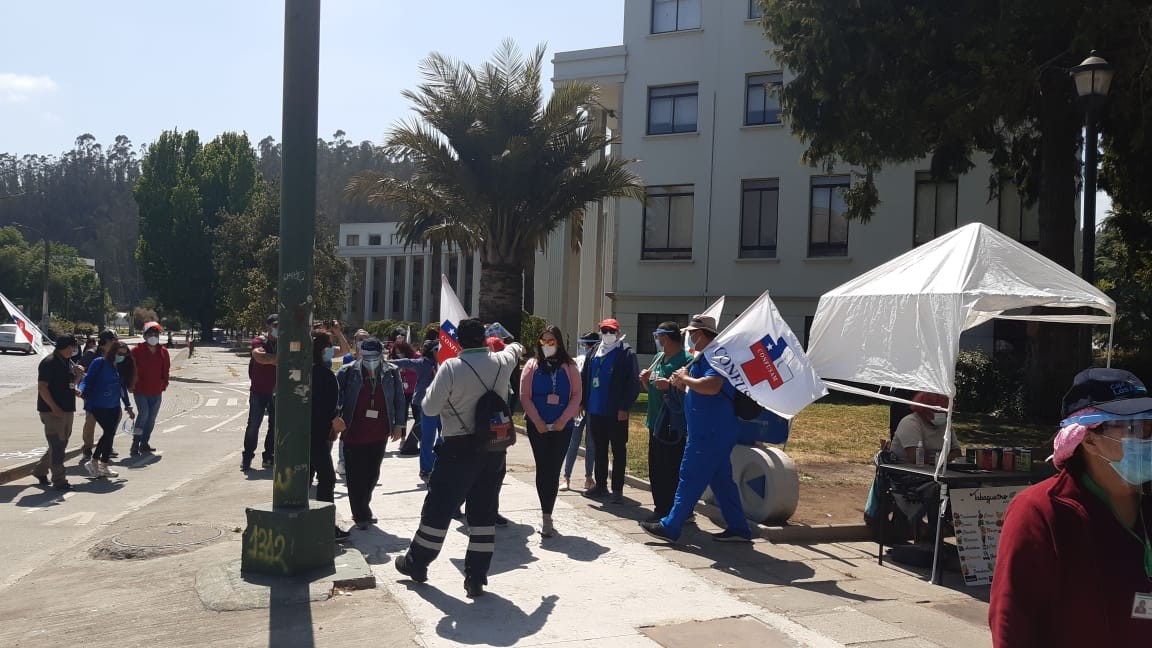 Manifestación trabajadores de la Salud frente a la Universidad de Concepción“Hemos negociado, más que negociado, hemos estado en reuniones son 8 meses que hemos estado en reuniones con el subsecretario y con él ministro, ellos mismos se jactan decir qué han estado en más de 16 reuniones con el ministro y cuarenta y tantas reuniones con el subsecretario, pero con esas no hemos tenido ningún avance” señala Patricia Valderas, ante la enorme cantidad de reuniones que han tenido los distintos gremios, acerca del presupuesto 2021 y la entrega de otros beneficios al personal de salud pública.