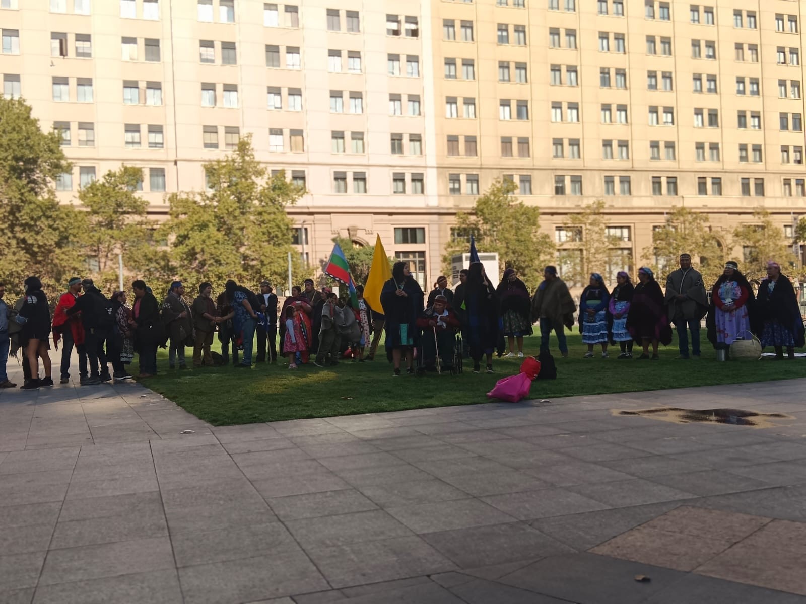 Manifestación de familias mapuche pewenche en las afueras de La Moneda | Fotografía enviada a Resumen.cl