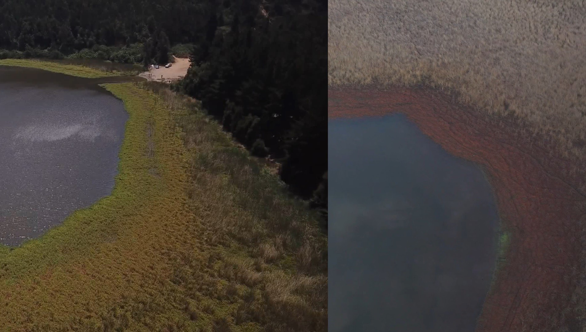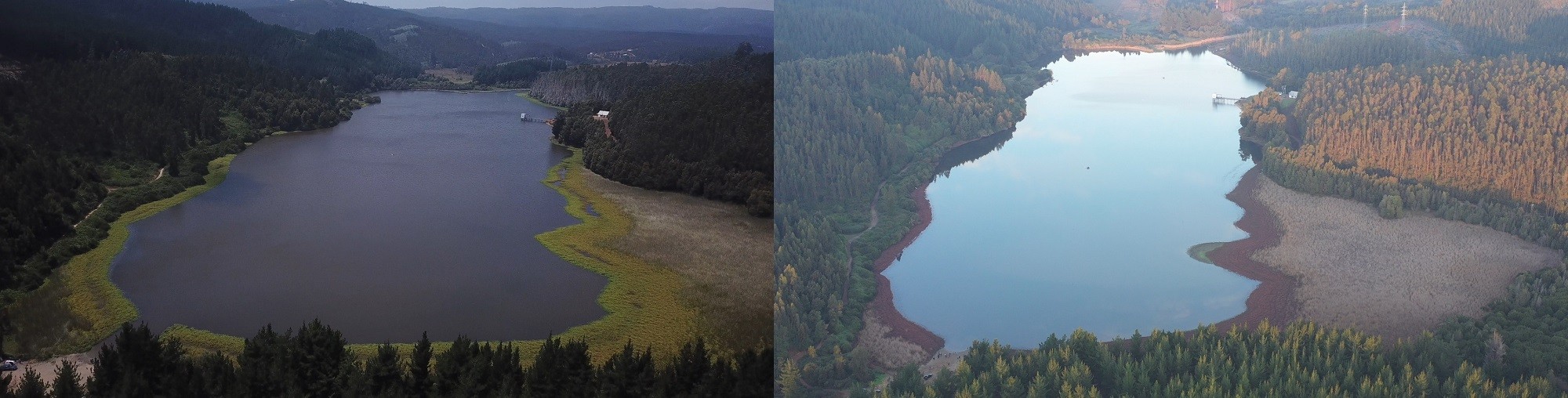 A través de imágenes aéreas en los meses de febrero de 2021 y junio de 2021 captadas por Resumen, se logra captar el cambio drástico en la situación en el ecosistema de la Laguna Quiñenco en las faldas de la Cordillera de Nahuelbuta, en Coronel. Gran preocupación ha generado la escasez hídrica que se evidencia por ejemplo en la vegetación, a pesar de que una foto es en pleno verano y la otra en la temporada de lluvias.