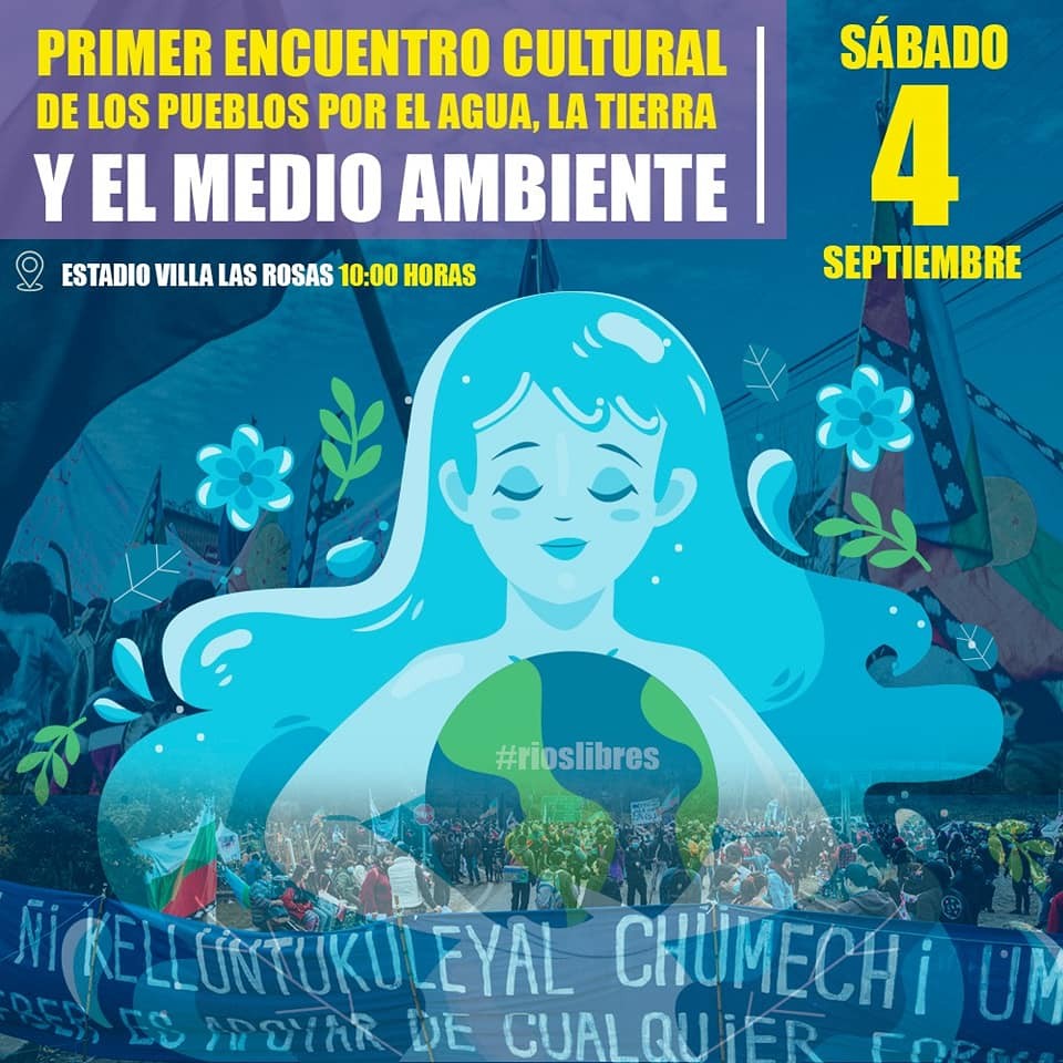 Para este sábado 4 de septiembre se encuentra convocado el Primer Encuentro Cultural de los Pueblos por el Agua, la Tierra y el Medioambiente, el cual tendrá como punto de encuentro el Estadio de Villa Las Rosas, ubicado a poco más de 3 kilómetros de la plaza de Antuco.