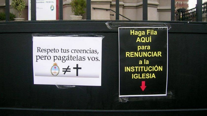 [resumen.cl] "No en mi nombre": La campaña por abandonar la Iglesia Católica mediante el proceso de Apostasía sigue con fuerza en Argentina desde que el Congreso rechazara el proyecto de aborto, alcanzando más de 4500 personas que han renunciado a su bautismo en un mes. La Iglesia fue un férreo opositor al proyecto e hizo una intensa campaña en su contra en distintas instancias, incluyendo el lobby con senadores y senadoras.
