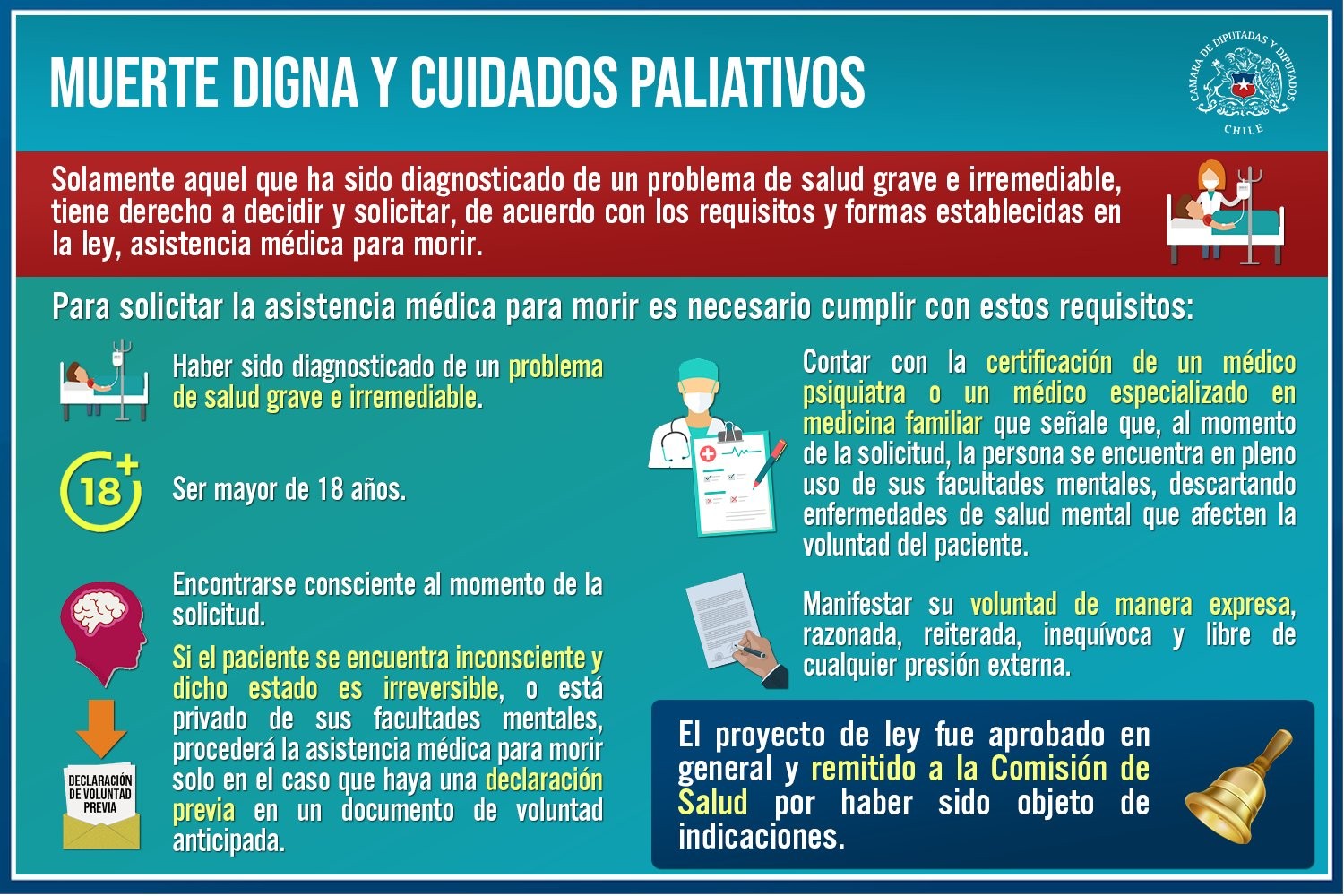 [resumen.cl] La Cámara de Diputadas y Diputados de Chile aprobó en general, hoy jueves 17 de diciembre, el proyecto de ley que establece una normativa jurídica que permita a una persona que, cumpliendo ciertas condiciones, decida y solicite asistencia médica para morir.
