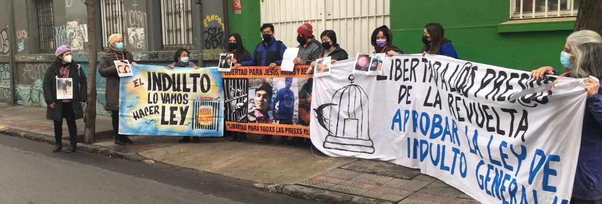 Como es de conocimiento público, el pasado 11 de agosto se aprobó en la Comisión de Constitución del Senado la idea de legislar sobre el proyecto de ley que concede Indulto General (Boletín número 13.941-17). Dicho proyecto de ley, cuyo espíritu es la búsqueda de la libertad de nuestros familiares y de todos(a) los(a) P.P. de la Revuelta mediante una solución política, ha sido aprobado ya en 3 comisiones del Senado, y tendría que disponerse a pasar a Sala, cuestión que debiese resolver en estos días el Comité del Senado.