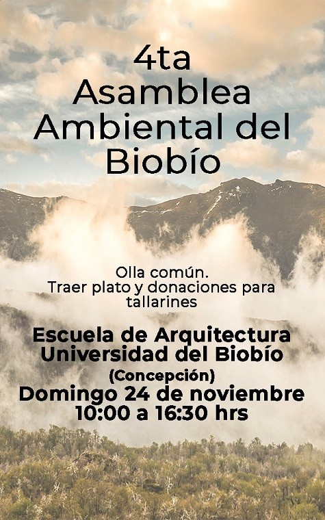 El conjunto de organizaciones socio-ambientales llamó a participar de su 4ta asamblea para este domingo 24 de noviembre de 10:00 a 16:30 en la escuela de arquitectura de la Universidad del Biobío.