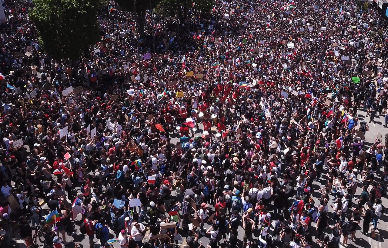[resumen.cl] El estallido de descontento social, incubado en décadas de injusticias y arbitrariedades, se ha expresado este miércoles en una apoteósica y masiva marcha iniciada al medio día de este miércoles desde Plaza de Tribunales de Justicia. La columna fue encabezada por el gremio de trabajadores y trabajadoras de los servicios de Salud Municipal, adheridos a la Huelga General de dos días (miércoles y jueves), convocada por diversas organizaciones sindicales del país.