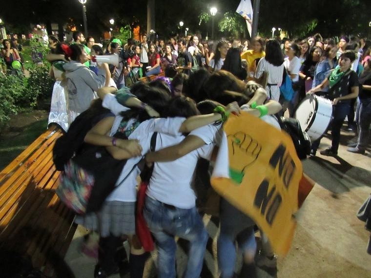 Durante la tarde, antes de las 18 horas estaba instalado junto al Quiosco de la Plaza de Armas, en cuya vecindad comenzaron a congregarse una gran cantidad de mujeres. De los comentarios escuchados de las propias asistentes pude ir concluyendo que el número de participantes superaba ampliamente las expectativas, lo que fue confirmado por las organizadoras al dar inicio al acto político cultural previo a la marcha.