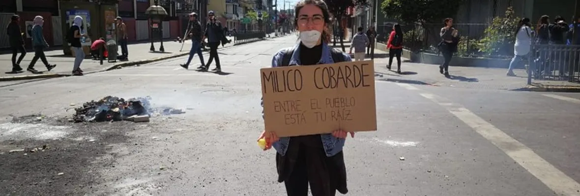 ? Javiera Briones, estudiante de Sociología y vocera de la vogesex UdeC fue detenida por militares esta tarde en la remodelación Paicaví por efectivos militares. #EstoPasaEnChile #Concepción #Paicaví #detención #militares pic.twitter.com/afBjPldMEY