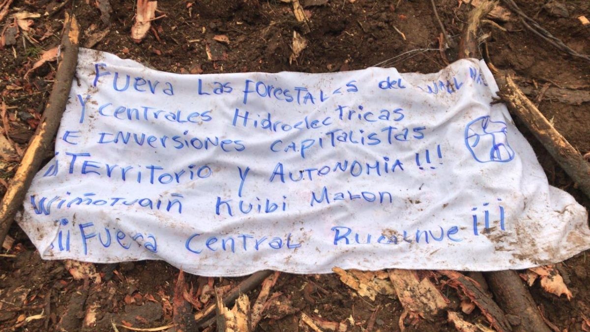 En el lugar, fue dejado un panfleto: "Fuera las forestales del Wallmapu y centrales hidroeléctricas e inversiones capitalistas, ¡Territorio y autonomía!, Wiñotuaiñ Kuibi Malón, ¡Fuera Central Rucalhue!".También puedes leer: Una grúa y cinco camiones quemados dejó ataque a Forestal Mininco entre Curanilahue y Nacimiento