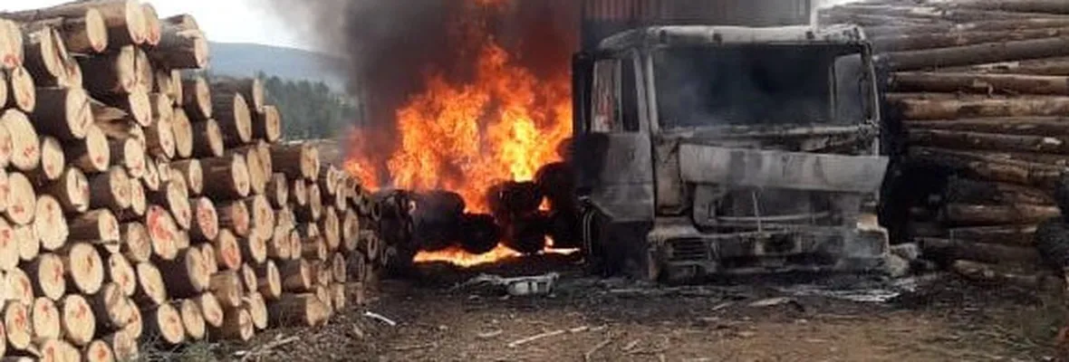 [resumen.cl] Un trineumático, un skidder, un camión y un bus fueron destruídos en un presunto ataque incendiario en la comuna de Contulmo, Provincia de Arauco, en el límite con la Región de la Araucanía.