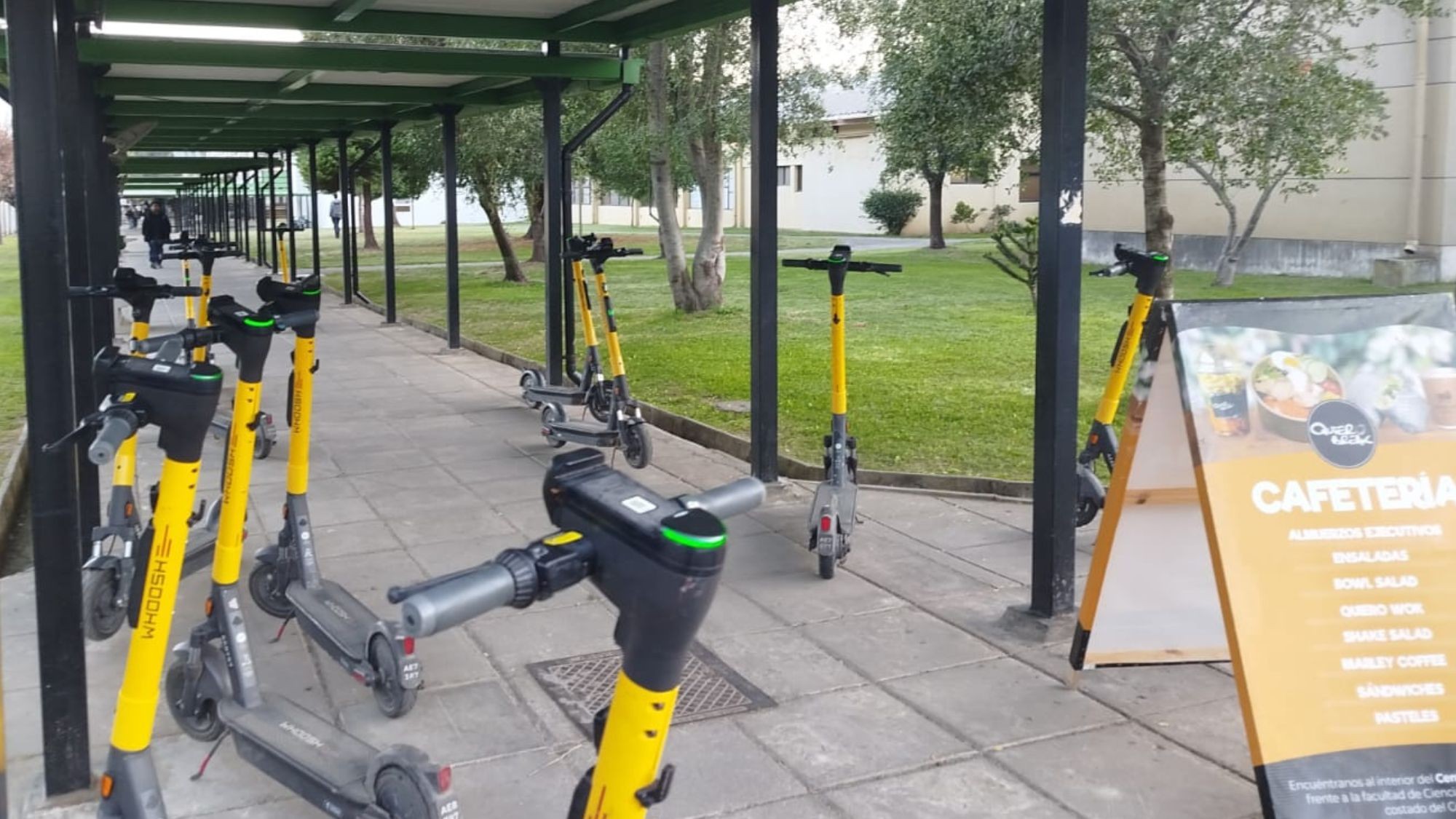 Scooters eléctricos obstruyendo el paso de peatones en Universidad de Concepción.
