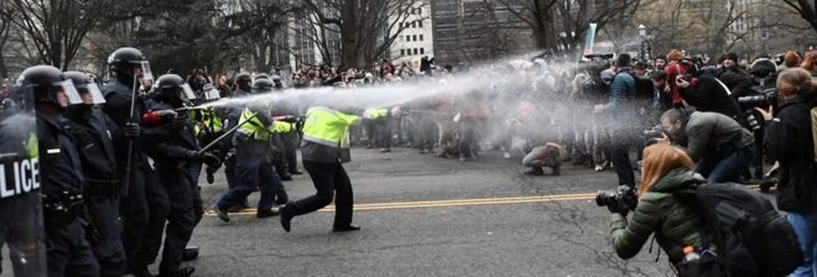 Sin embargo, fue asediada una y otra vez por grupos agresivos de hasta 200 manifestantes furiosos que gritaban que dialogar es traicionar, y que hay que obstruir en todo y en cada cosa al gobierno y llamando además a derrocar al que calificaban como “el Traidor Trump”.