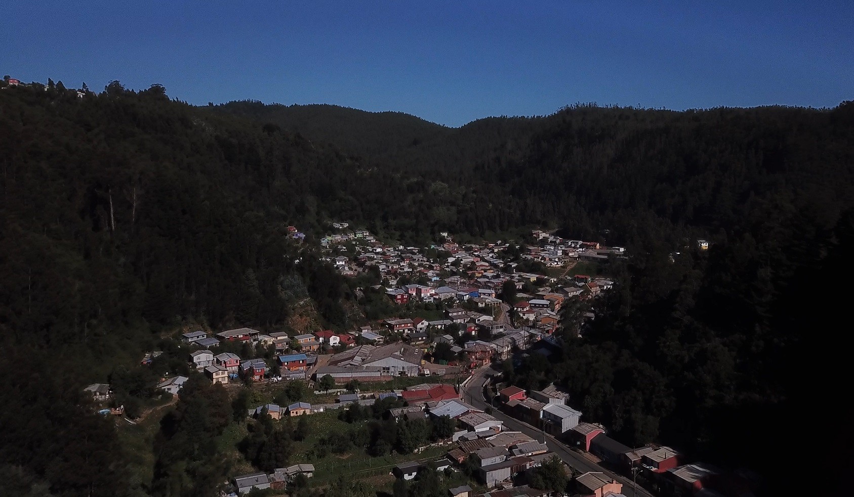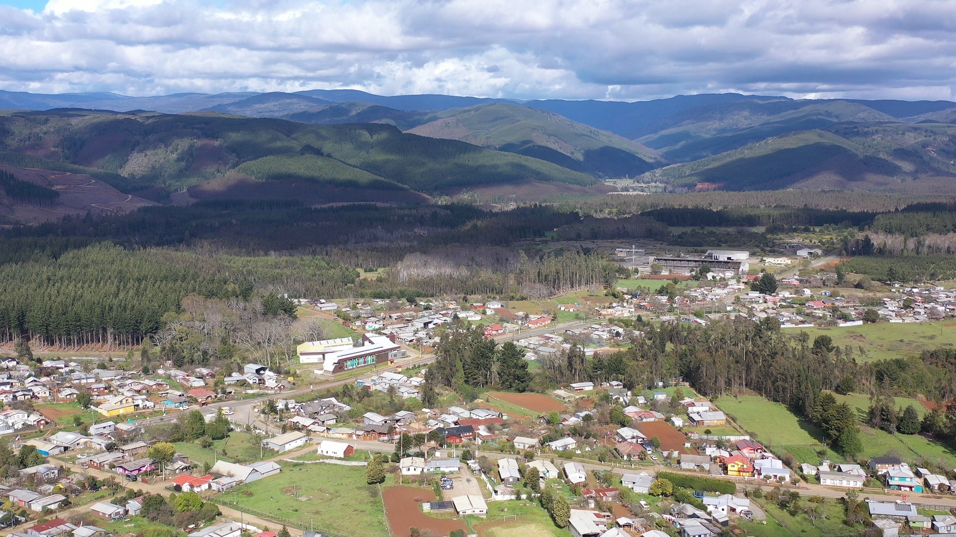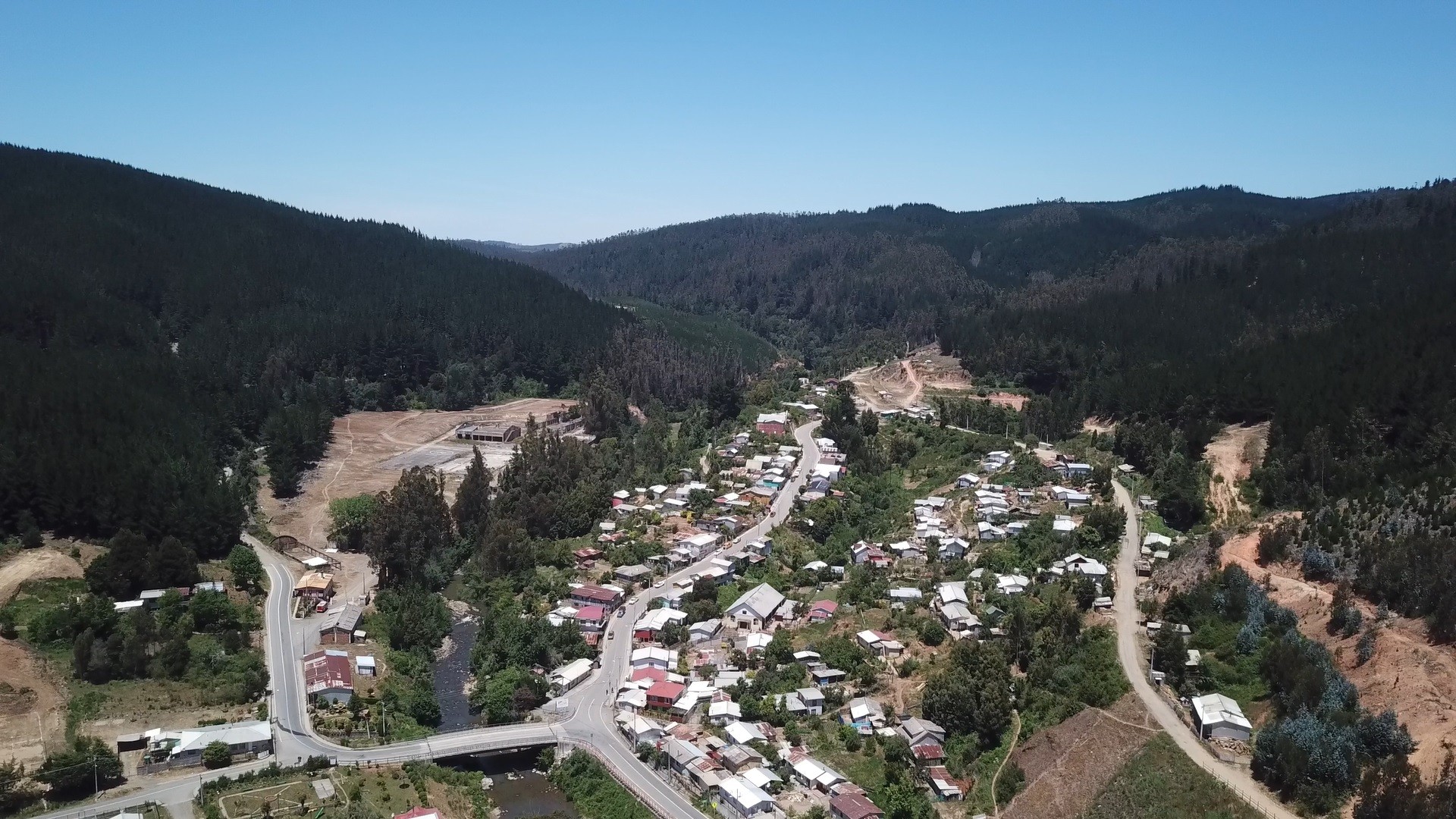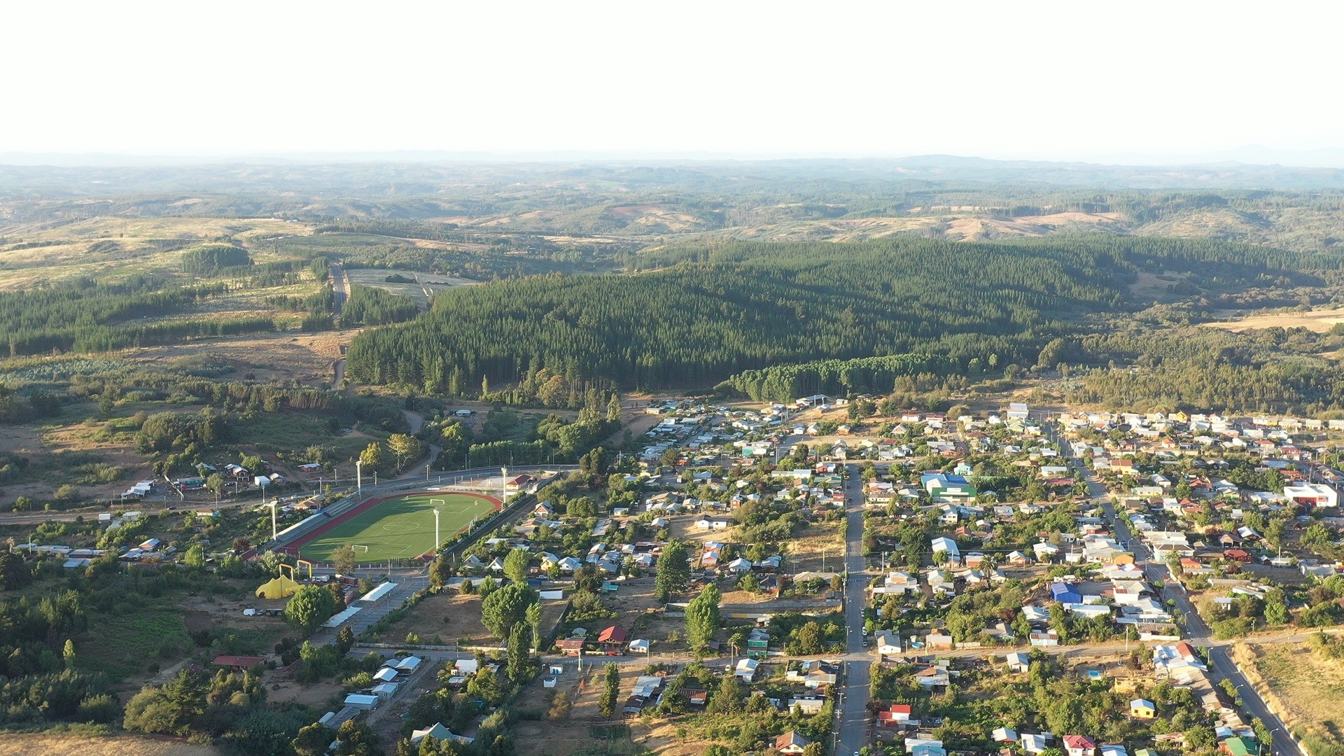 Curanilahue, rodeado de monocultivos de pino y eucalipto, sin cortafuegos.