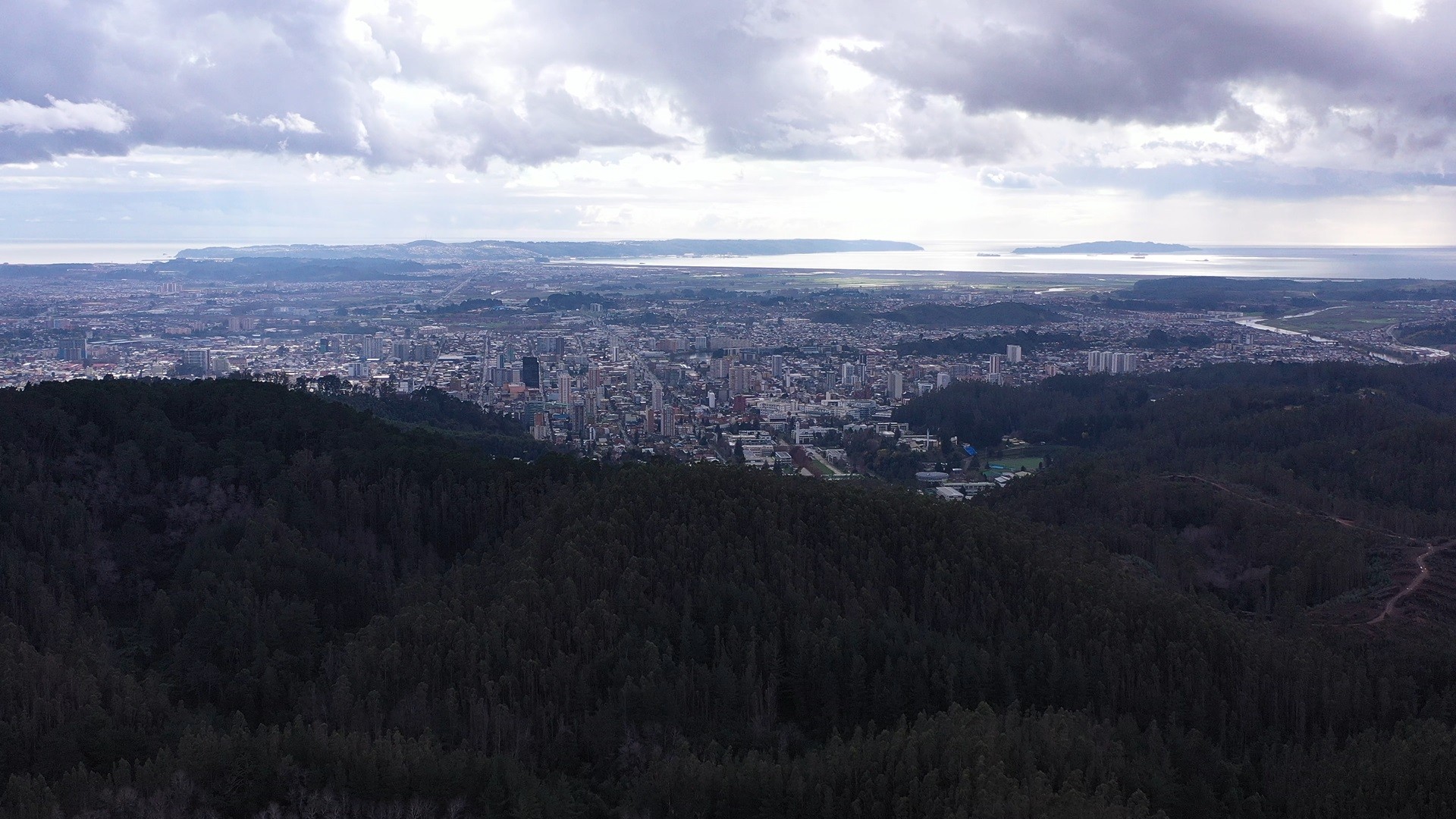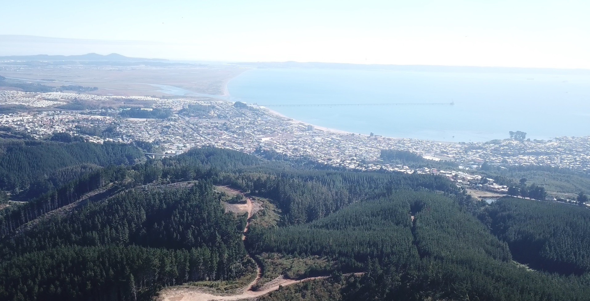 Chiguayante, rodeado de monocultivos de pino y eucalipto, sin cortafuegos.