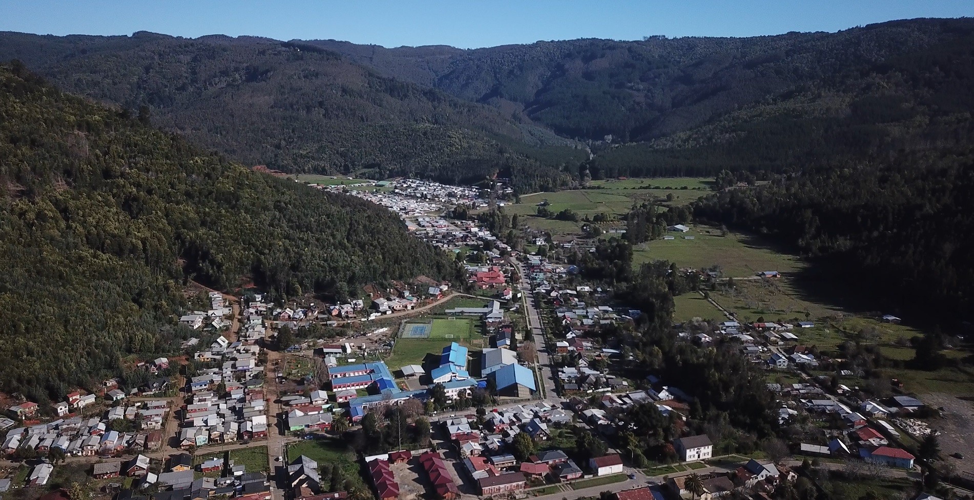 Contulmo, rodeado de monocultivos de pino y eucalipto, sin cortafuegos.