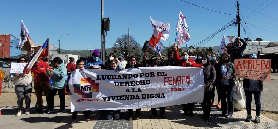 Este sábado al mediodía, la Federación Nacional de Pobladores (FENAPO) se manifestó con banderazos llamando a votar Apruebo en distintas comunas de la Provincia de Concepción.
