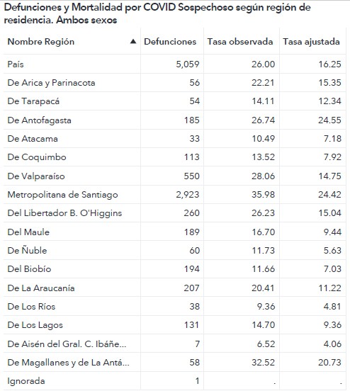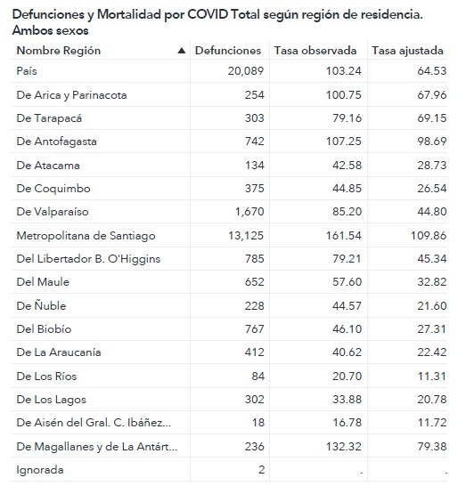 La cifra total de personas fallecidas considerando casos confirmados y casos sospechosos alcanzó las 20.089 personas. En la región del Biobío el número de defunciones totales alcanzó las 767