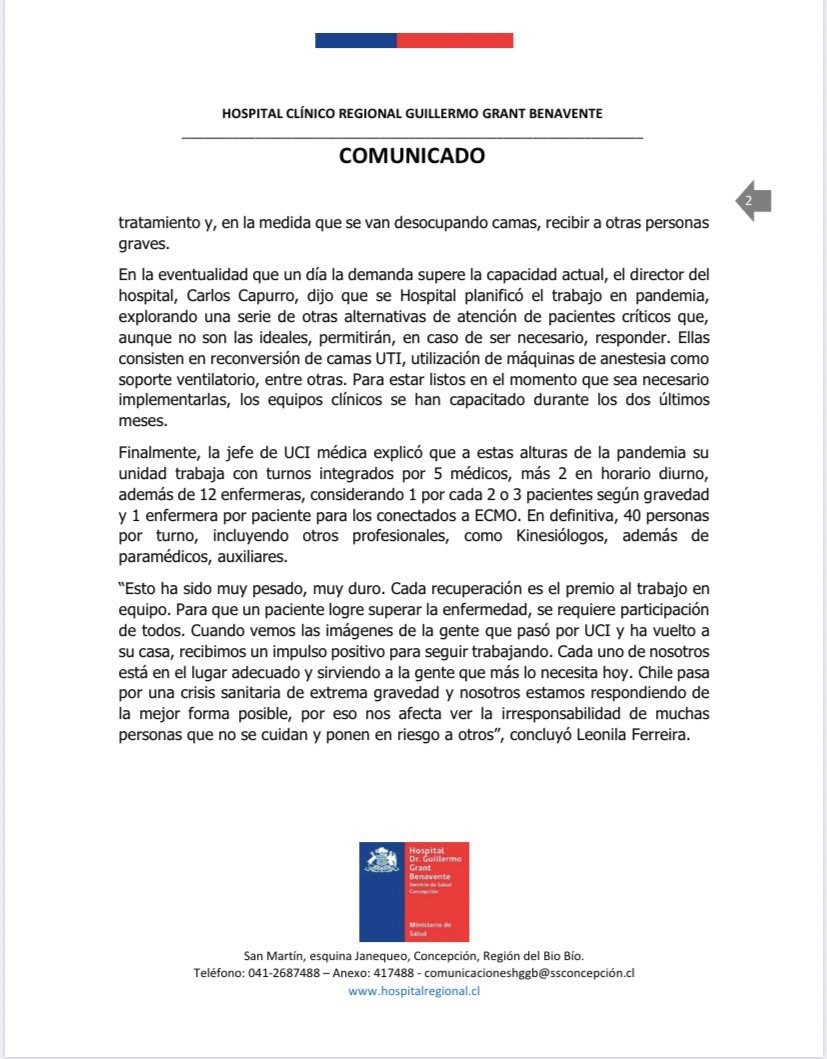Las cifras se conocen en un complejo contexto, ya que la UCI del Hospital Regional de Concepción, el mayor del centro sur del país y que ha sido utilizado también para atender a pacientes de otras regiones, se encuentra prácticamente colapsado. El día martes la jefa de la UCI, Leonila Ferrerira, reveló que las 56 camas UCI del hospital estaban ocupadas, misma situación que se mantenía hasta ayer, con el 90% de las camas ocupadas por pacientes de la Región y 10% de pacientes de otras zonas del país.