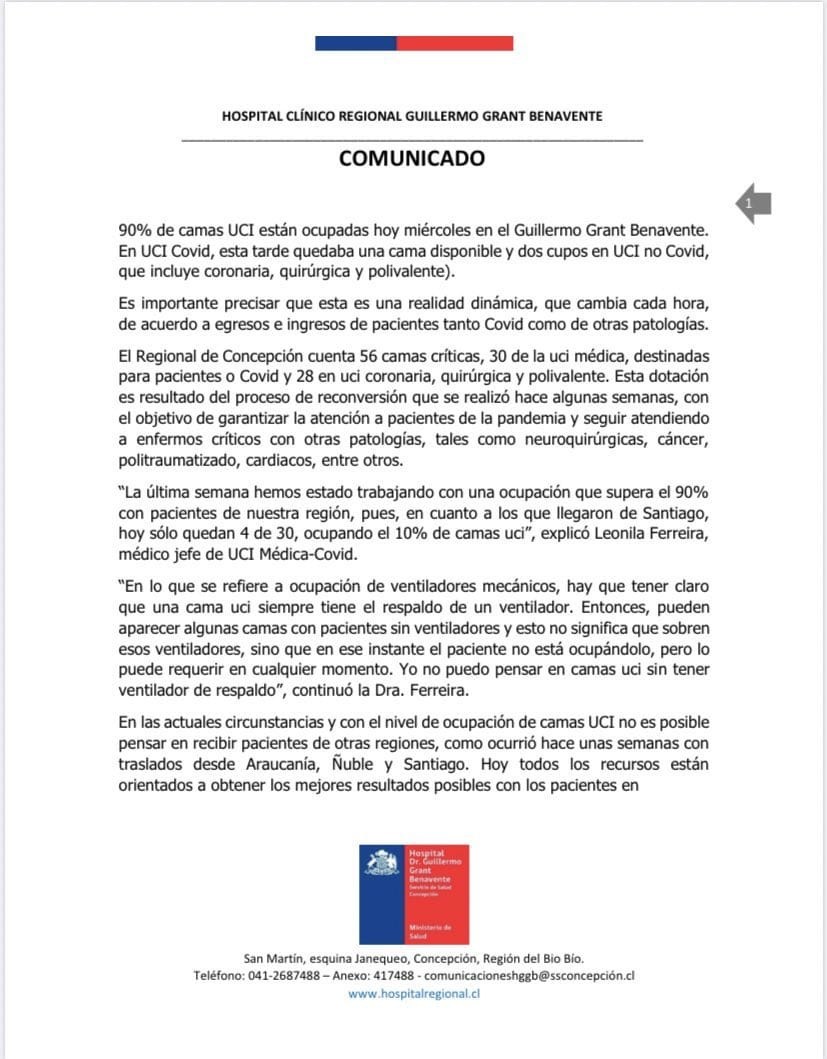 Te puede interesar: Profesionales de la Salud claman por cuarentena en Gran Concepción: 90% de camas críticas ocupadas