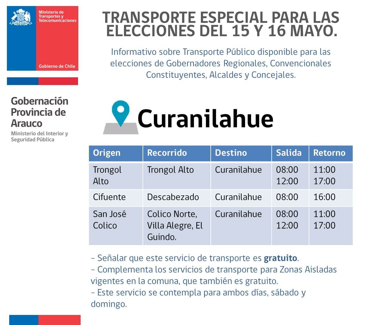 Asimismo, el seremi (s) de Transportes, Víctor Reinoso, señaló que son 95 los servicios que operarán bajo la modalidad sin costo, considerando tanto el traslado aéreo como marítimo de quienes habitan en las islas de la región, así como también servicios para zonas aisladas en la Provincia de Arauco: