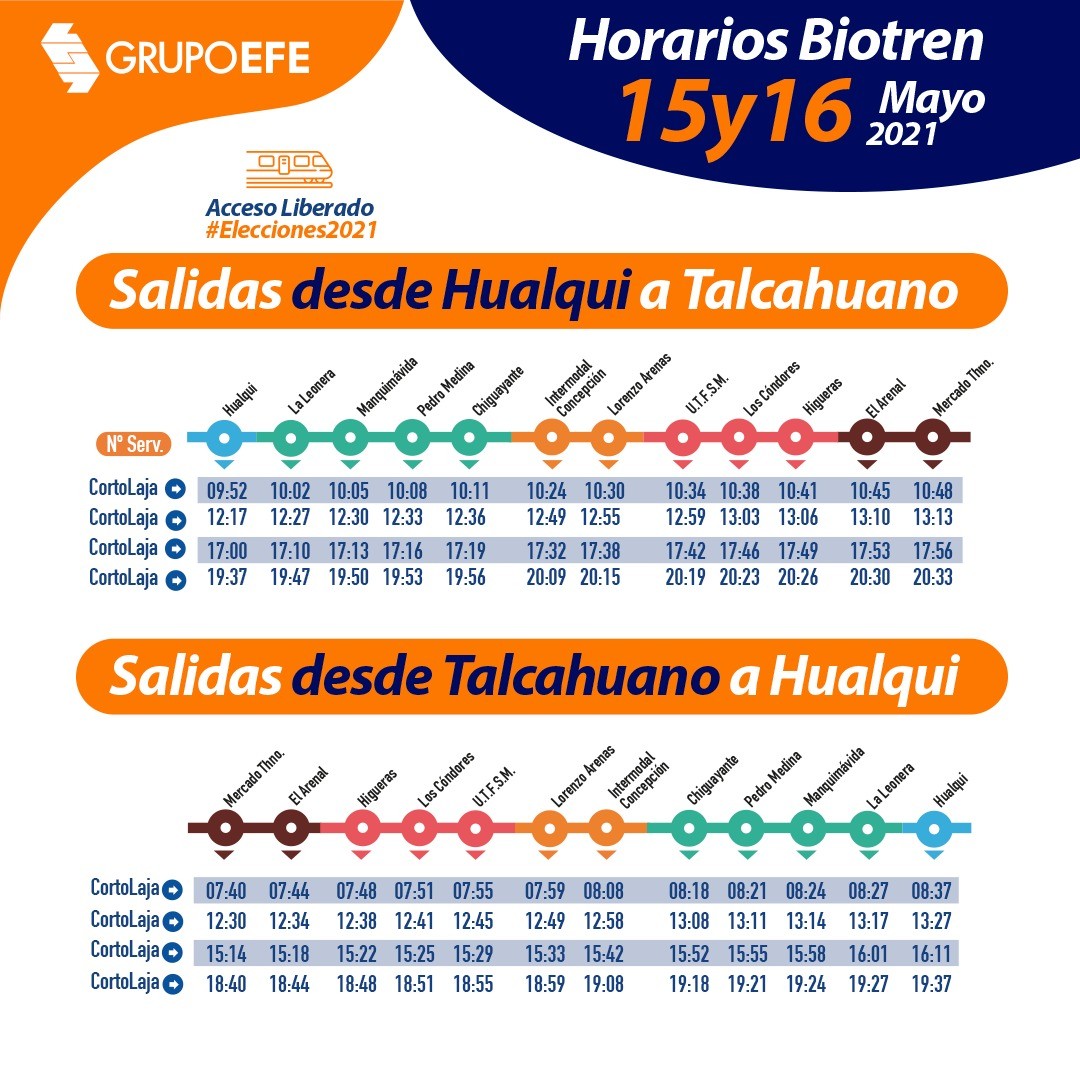 El servicio de ferrocarril urbano del Gran Concepción tendrá los siguientes horarios de funcionamiento: