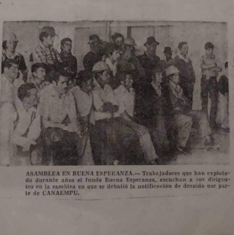 Asamblea de campesinos de Buena Esperanza frente al inminente desalojo, fines de los ‘70.