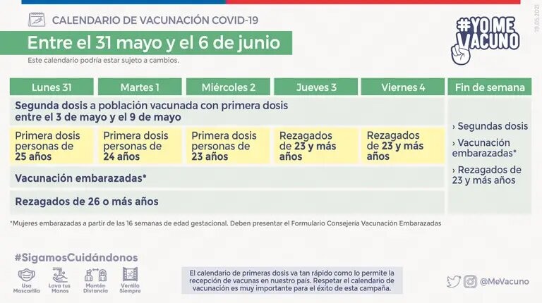 A este grupo se sumarán también quienes recibieron la primera dosis entre el 3 y el 9 de mayo, para inocularse con su segunda dosis.