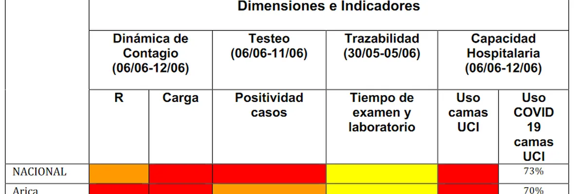 El reporte precisa que la capacidad hospitalaria a nivel nacional al 15 de junio llega a 96,31% , prácticamente igual que la semana anterior (96,8%) aunque ahora hay cinco regiones menos con ocupaciones mayores al 90%"