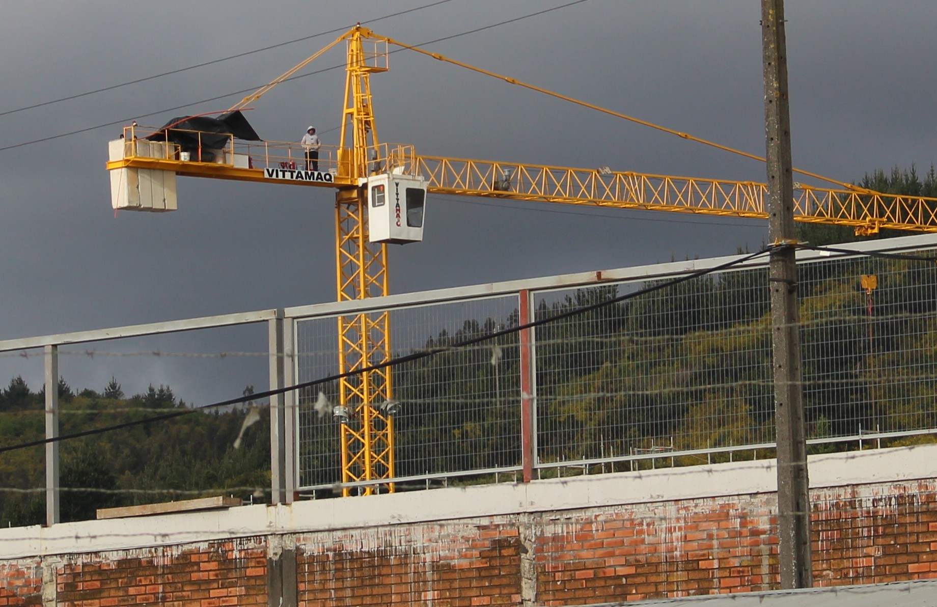 Uno de los trabajadores sobre la grúa después de las lluvias que cayeron sobre Concepción el sábado 30 de septiembre y domingo 1 de octubre de 2017