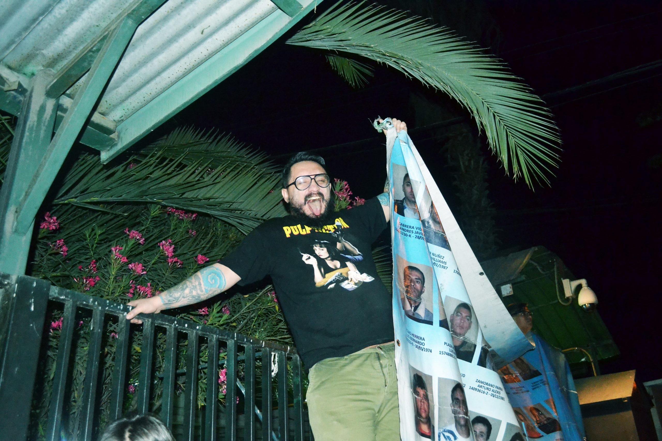 A eso de lass 23 horas, cuando el carnaval -que incluía tinkus, batucadas, comparsa Lambayeque y caporales- pasó por San Francisco, por la entrada de gendarmería, el presidente de la agrupación 81 razones César Pizarro y el artista y vecino del lugar, Francisco Papas Fritas, se subieron osadamente a la reja de entrada del recinto y colgaron un pendón con los rostros de las víctimas del incendio y cerraron la entrada al lugar mientras el carnaval y las comparsas hacían su música y baile frente a la cárcel, parándose en el lugar y realizando un baile a cada uno de los 81.