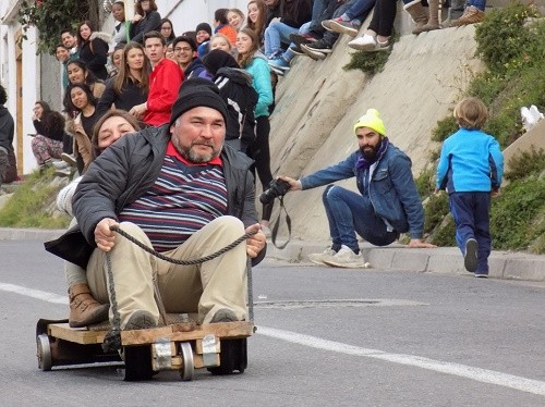 Alrededor de las 15 horas se dio inicio a la competencia de carretones en donde numerosos participantes, provenientes desde distintos cerros de Valparaíso, Viña del Mar e incluso de la zona interior de la región, demostraron sus habilidades para conducir estos populares “vehículos”. Hombres, mujeres, niños y niñas, distribuidos en diferentes categorías, tales como adulto, sub 17 y familiares, demostraron sus destrezas sobre las populares “chanchas” deslizándose raudamente en la empinada calle Waddington. No faltaron los accidentes y caídas, incluyendo la de un participante mayor de 70 años, el cual tuvo que ser trasladado en ambulancia para ser evaluado y asistido sanitariamente, pero afortunadamente resultó solo con contusiones y erosiones que no revirtieron mayor gravedad.