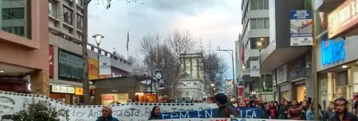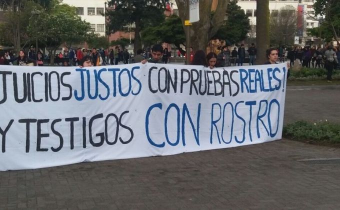 Lienzo en protesta en Concepción criticando la utilización de testigos protegidos.