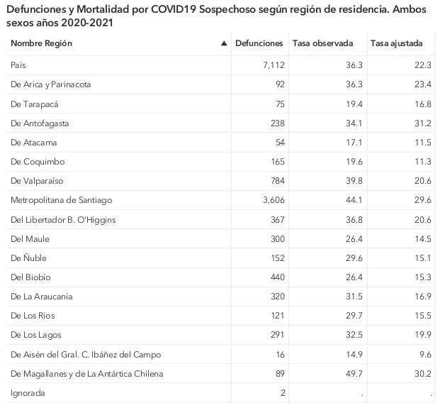Mientras que la cifra de fallecimientos sospechosos de Covid-19 fueron 5.384 en 2020 más 1.728 personas este 2021 alcanzando 7.112 El Biobío presentó 231 muertes en 2020 y 209 muertes sospechosas en 2021 para alcanzar 440 personas.