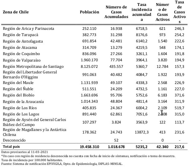 Solo en la Región de Antofagasta los casos activos disminuyeron levemente desde 1.559 hasta 1.540