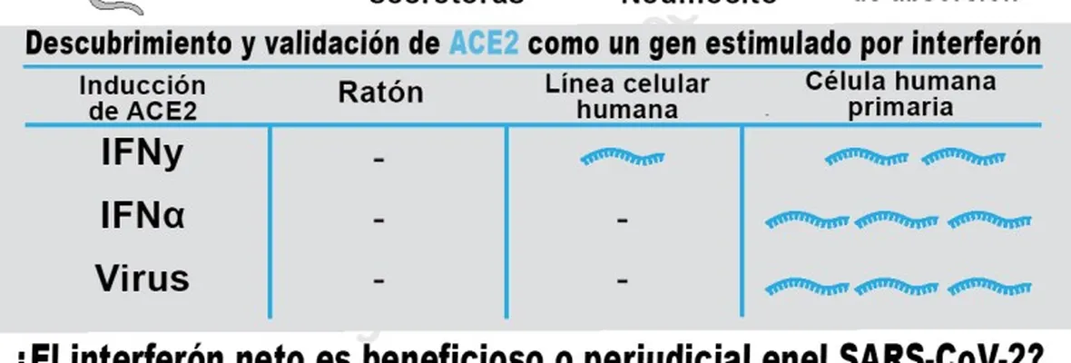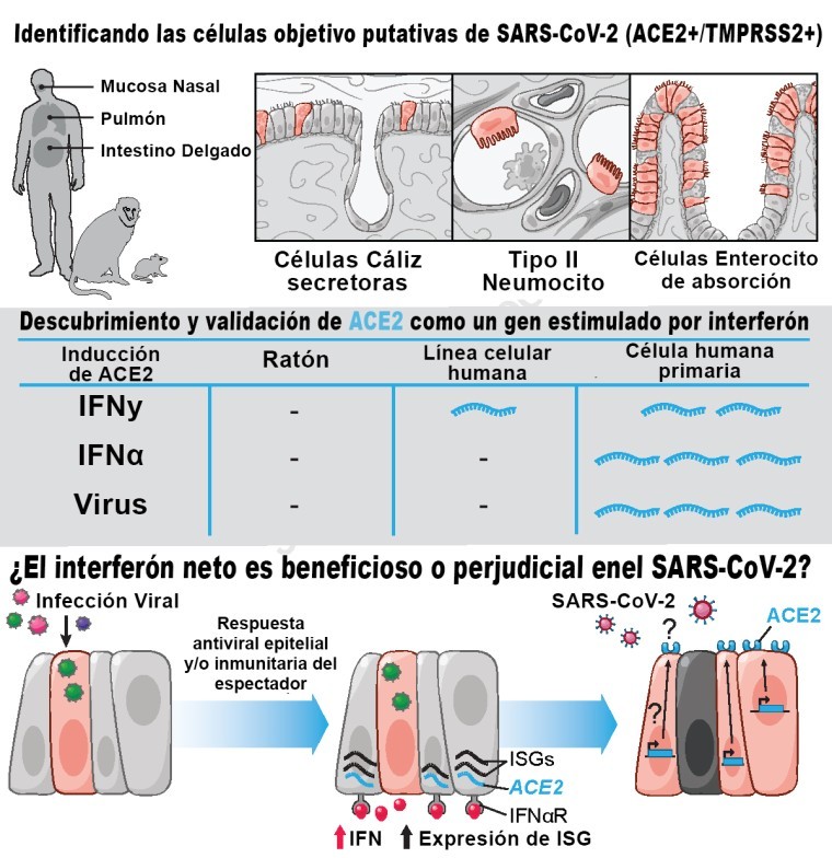 El estudio indica que "de manera sorprendente" descubrieron que el receptor ACE2 es un gen estimulado por interferón humano (ISG) in vitro. Para ello utilizaron células respiratorias y por lo tanto el estudio extiende los hallazgos a infecciones virales en vivo.