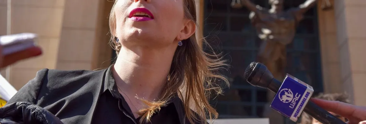 *Imagen: Chelsea Manning liberada del encarcelamiento por negarse a testificar contra Julian Assange. (Créditos: Jahi Chikwendiu | Extraída de The Washington Post)