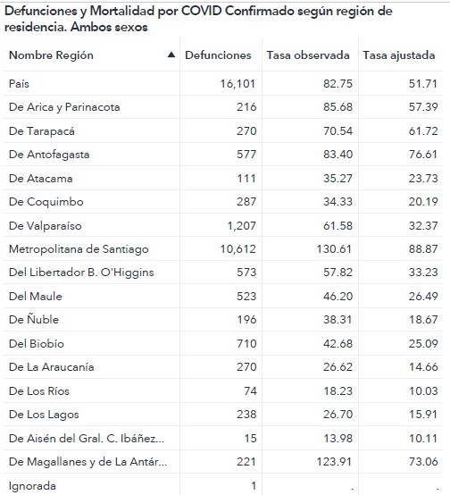 La cantidad muertes considerando casos confirmados alcanzó las 16.101 personas. La región del Biobío registró 710 muertes confirmadas de COVID-19.