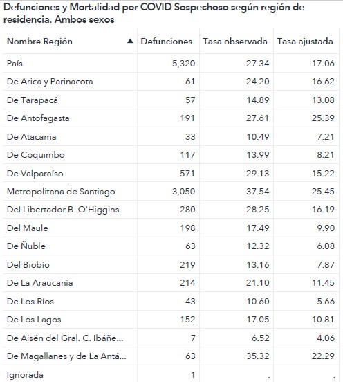 Mientras que la cifra de fallecimientos sospechosos de COVID-19 alcanzó las 5.320 personas. El Biobío presentó 219 muertes sospechosas de COVID-19.