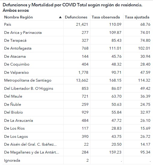 La cifra total de personas fallecidas considerando casos confirmados y casos sospechosos alcanzó las 21.421 personas. En la región del Biobío el número de defunciones totales alcanzó las 929