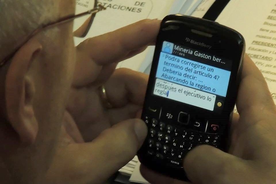 Registro muestra a Gustavo Muñiz quien habría recibido indicaciones de un directivo de Yamana Gold durante el debate de la ley que ampliaba la posibilidad de extender la megaminería. | Fotografía: Evelyn Oyarzo