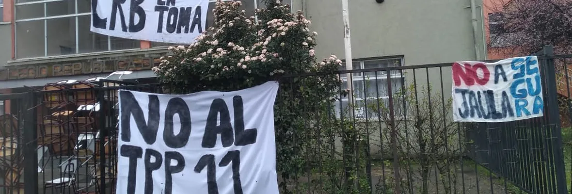 [resumen.cl] El Colegio República de Brasil amaneció tomado por sus estudiantes esta mañana como forma de manifestar su rechazo a Aula Segura, a la malla curricular que dejará como optativo Historia, Arte y Educación Física y contra el proyecto del TPP11.