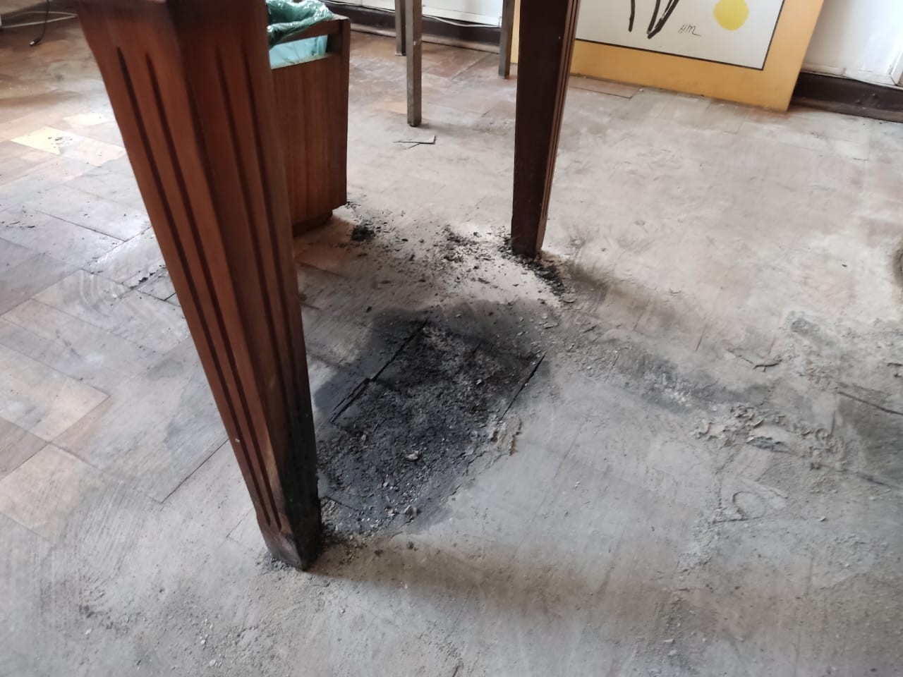 Piso de oficina lleno de hollín, tras amago de incendio en la oficina de Resumen/ marzo de 2023