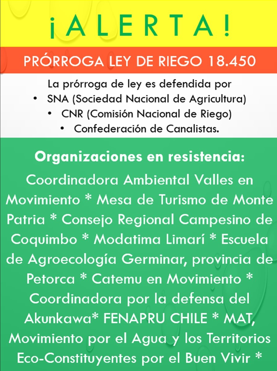 En definitiva, no se está convocando a expertos, ni a las comunidades afectadas. Más bien, se está intentando –con suma urgencia- “amarrar” la continuidad de una ley que ha contribuido, desde la dictadura, a la concentración de la riqueza, el agua, la tierra y el poder, en desmedro de las comunidades campesinas y del medioambiente.