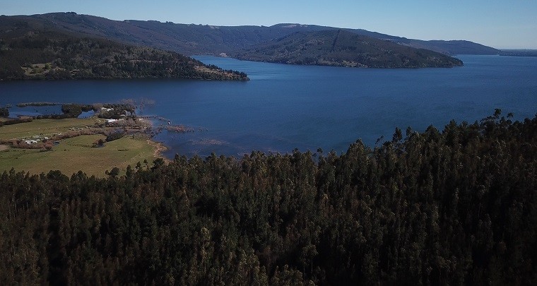 Lago Lanalhue en la comuna de Contulmo, zona reivindicada por comunidades mapuche lavkenche, actualmente bajo propiedad de diversas empresas forestales y terratenientes. Dándole en su mayoría un uso para el monocultivo forestal.