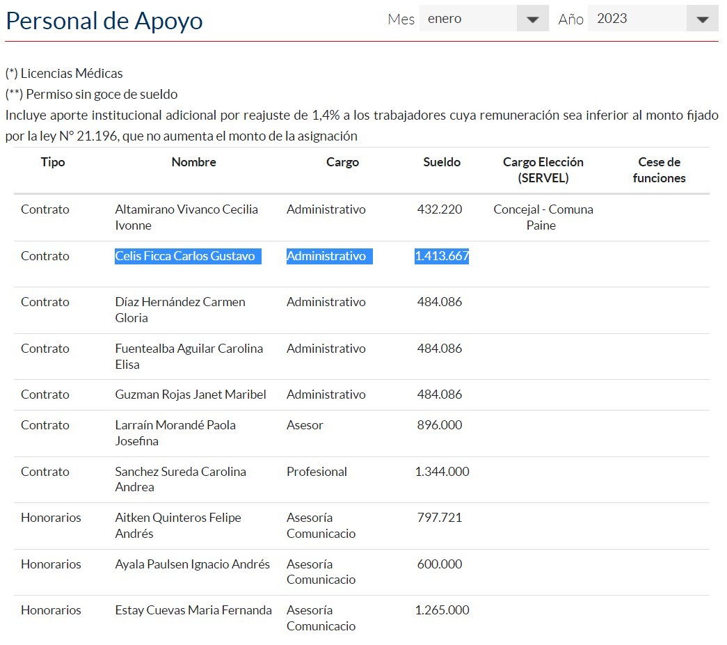 A 50 años del golpe de Estado, partidos políticos de extrema derecha continúan manteniendo a exagentes de la dictadura, esta vez, por medio de puestos de trabajo pagados con recursos del Congreso. Cabe mencionar que en el caso de Carlos Celis Ficca, solo se apuntan como administrativo, pero sin puntualizar cuál sería la función por la que recibe mes a mes, $1.413.667.
